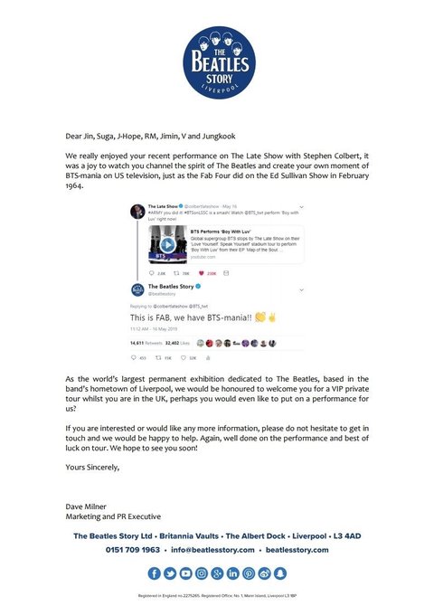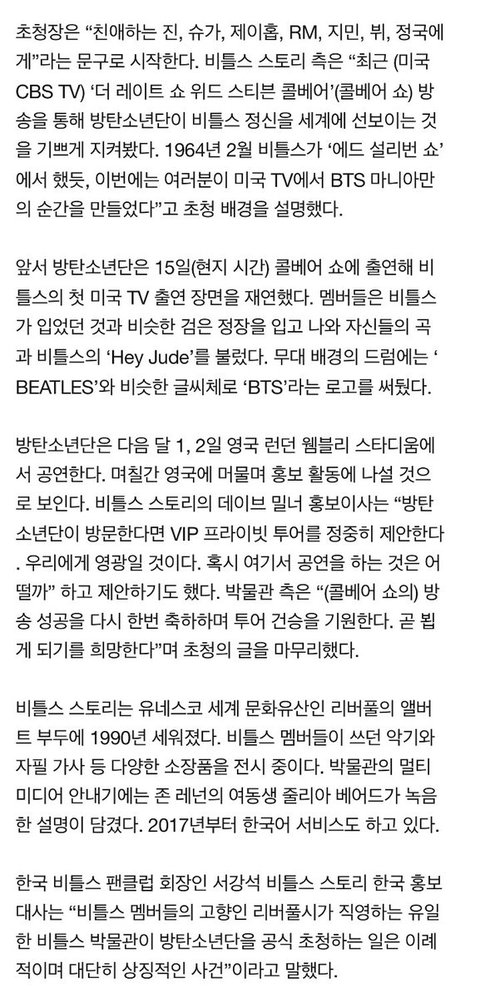 비틀즈 박물관에서 방탄 직접 초청하는건 이례적인 일이래