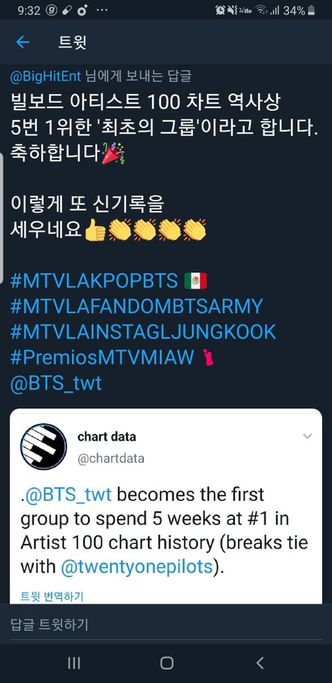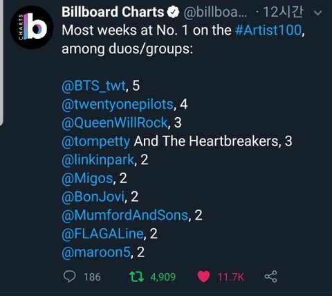 5번 1위한 최초의 '그룹' 이 방탄이래