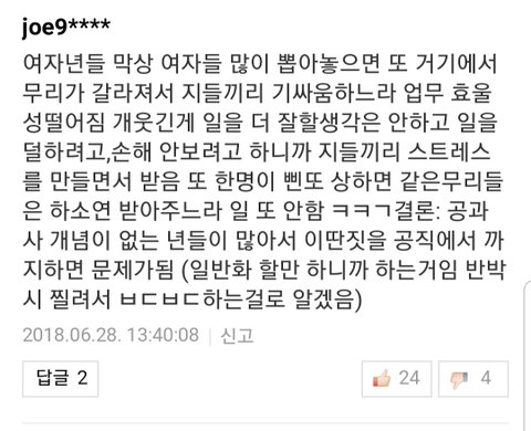 남자들 남초직장 다니는 얘기 들어보면 그분들 정치질도 여자 뺨때리더만