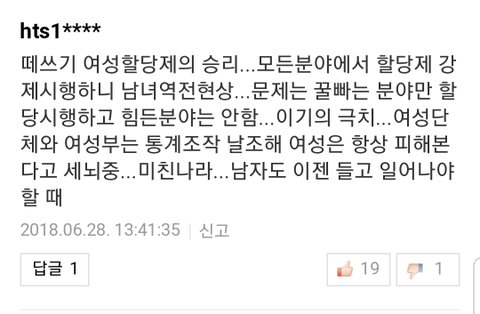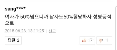 한국에 50%여성할당제 하는곳이 어딨다고ㅋㅋ