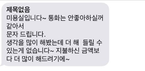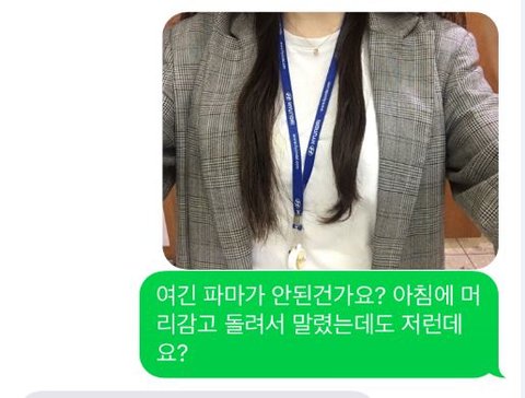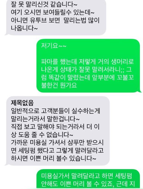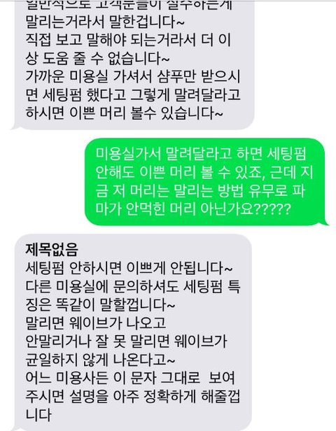그리고 저기 문자에 보면 어느 다른 미용사도 제 풀린 머리 보면