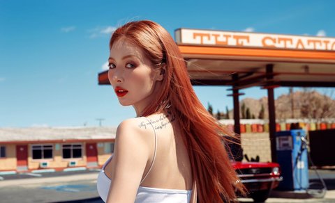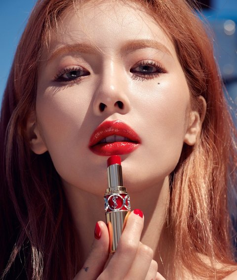 어울리기 쉽지 않은 색인데 현아는 걍 레드가 딱임