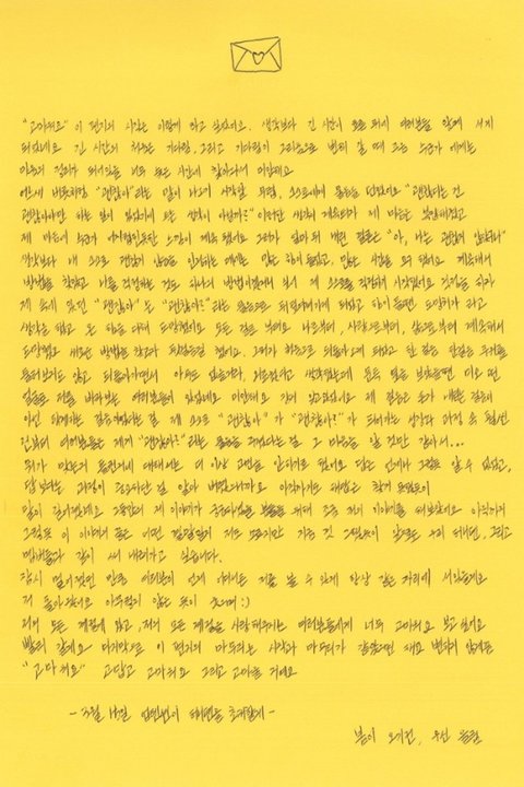 업텐션 활동 당시 팬들에게 쓴 자필편지 ㄷㄷㄷㄷㄷㄷ