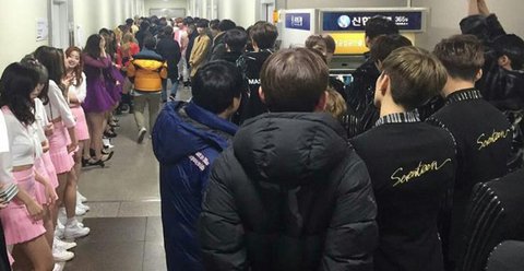 일렬로 줄서 기다리는 아이돌들..