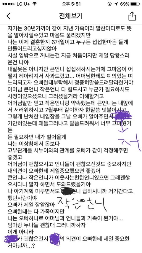 몰라서 결정했지만... 큰형님께서 아직도 교사로 힘든 상황이신걸 알고 난 지금, 먼저인 큰형님의 부탁을 뒤로한채 작은언니네를 도울수가 없어요 죄송합니다..-라구요
