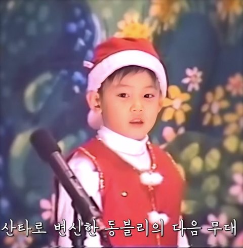 산타 모자 쓴 어린 차은우/ 동블리(=이동민, 차은우 본명)