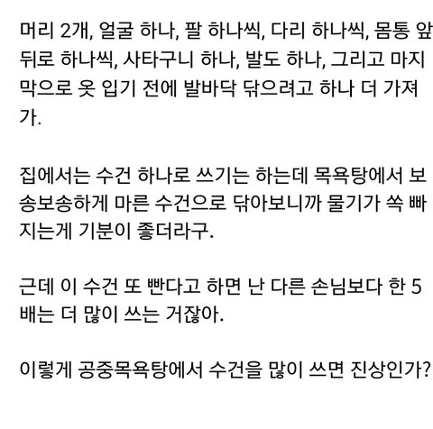 공중 목욕탕에서 수건 10개 넘게 쓰면 진상 고객인가?