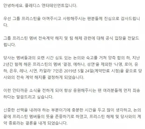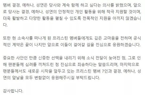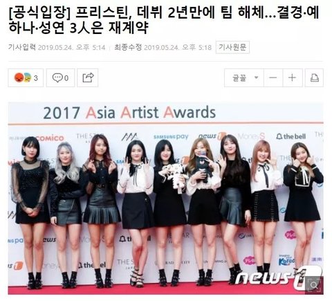 플레디스 소속 '프리스틴' 해체