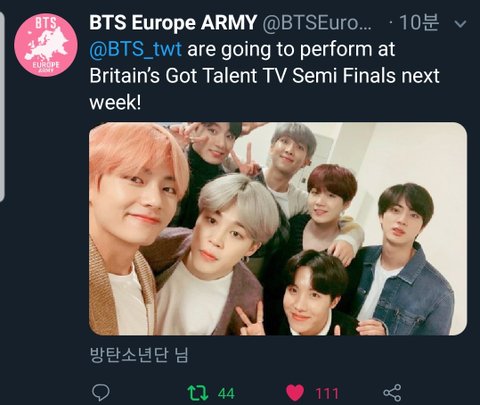 담주 브.갓탤 세미 파이널에 탄이들 나온대