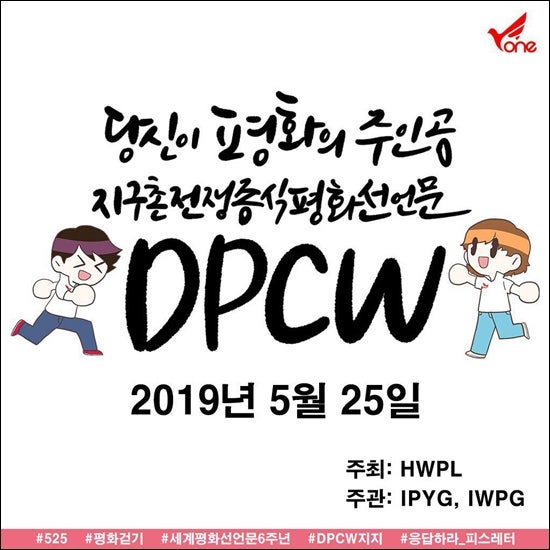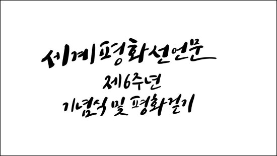 1. 평화를 사랑하는 마음으로 국제법 DPCW 10조 38항이 이루어지기를 간절히 소원하며 국가, 인종, 종교를 초월하여 "우리는 하나 We are ONE~!" 을 외치며 모두 한 마음으로 걸으니 평화가 다가오구요 ^*^