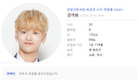 너네 프듀 X에서 강석화 연습생이라고 아니? MAMA 첫소절을 맡은 그아이야 ㅜㅜ