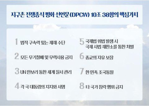 국제적으로 전쟁을 막을 수 있도록 UN에 상정할거야! #지구촌전쟁종식평화선언문 #DPCW