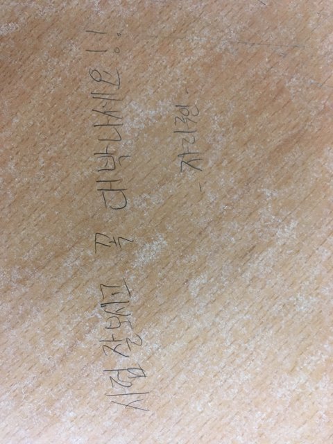 도착해서 화장실 다녀오고 이것저것 하다 시험 시작이 얼마 남지 않았을때 책상위에 메모를 발견하게 되었습니다.