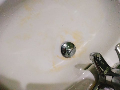 세면대에 떡볶이 국물 버렸는데 이렇게 자국남음 넘마한테 혼날듯 물로 개빡빡 닦았는데도 안지워짐;;