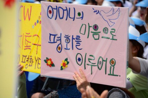 우리 모두 하나 되어 손에 손 잡고 평화의 기적을 이루어 봅시다.