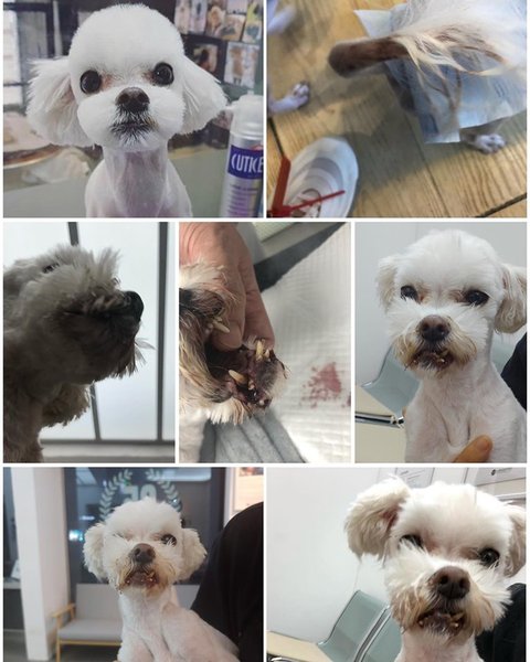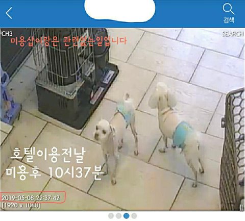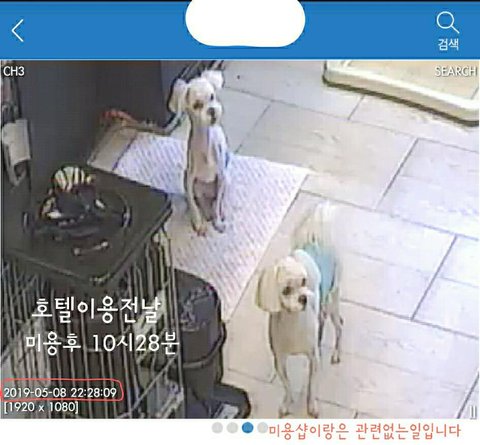 호텔링 하기 전날 미용할때 얼굴을 만져도 괜찮았다 사장님얘기와 미용샵cctv영상캡처를 부탁해서 보내주신 사진도 있습니다.(7년이 다되어가는 cctv화질이란점 참고하세요.)