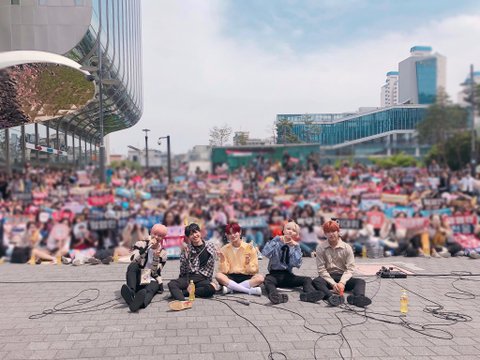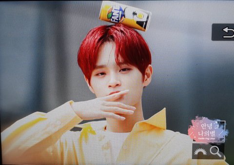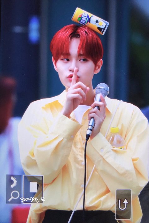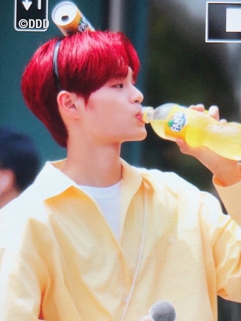 팬싸인회에서 팬이 만들어준 환타캔 머리티를하고 담당하는 파인애플맛 색인 노란색 셔츠를 입고 나타난 대휘 너무귀여워 환타보이 이대휘 AB6IX 로 데뷔하고 브리드란 곡으로 활동중이야 환타보이 관심부탁해