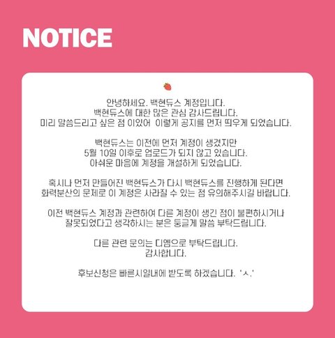 기존 백현듀스 걍 가벼운마음에 시작하다가 잠수타고 지금 계폭됨ㅇㅇ https://twitter.com/bbhduce100/status/1132526359576580096?s=19