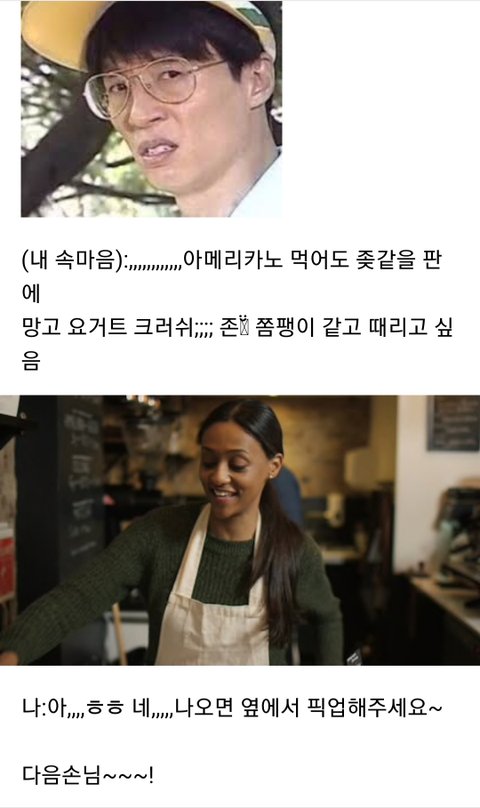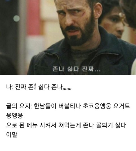 이건좀 개오바네 .. 먹는거가지고는 그러지 말길 남자는 초코프라페 못먹는줄아나 페미가좋아도 이런걸로는 안까는게 맞는거같은데?