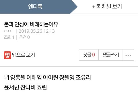어제 뷔로 어그로끌길래 캡쳐하려고 주시하고있었는데 뷔 어그로글쓰고 바로 앞페이지에 아이린 까글써놨더라고