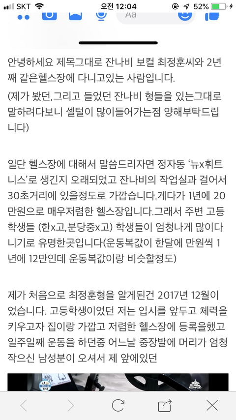 잔나비 최정훈 헬스장 다니는 ㅅ 증언