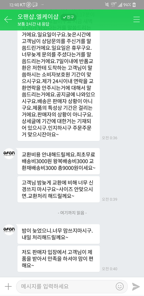 뭔가 이상한데 교환원래24시간안에 말안하면 안해주겠다고한거 제가 신고하겠다고하니 배송비 9000원이라고 한거라 잘알고얘기하려구요