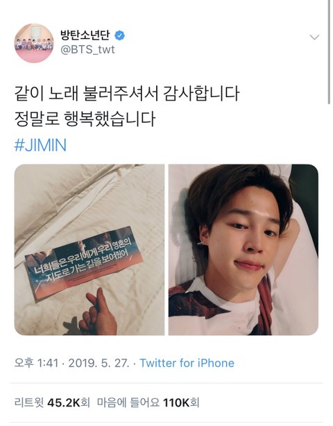 짐니 작은손으로 슬로건 숙소에 챙겨갔구나? 눈이 부엇어도 참 사랑스럽고 따뜻하다.. 지민이 뒤에는 항상 우리 이삐들이 있다 태앱보니 요즘 체력 떨어져서 운동도 못하는 것 같던데 잘먹고 단 하루라도 휴식할 수 있길