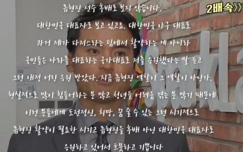 (예전에) 국가 대표로 저를 응원했다는 얘기 듣고.