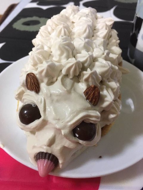 그래도 뭐라도 만들어준게 어디냐..하며 정성이 사랑스러워서 내키진 않지만 한입 먹을려고 케익칼로 배를 자르는데 속에서 씨뻘건 딸기시럽이 줄줄..흐르면... 꺄아악