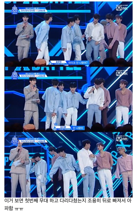 첫 무대를 마친 뒤 한 연습생이 다리부상으로