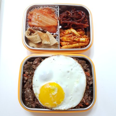 아무래도 1인가구이다보니 전날 먹고 남은 메인메뉴를 이용해 다음날 도시락 반찬을 만들곤 해요. 밑에 사진에 나올 소불고기를 먹고 난 다음날, 남은 소불고기를 이용해 볶음밥을 만들었어요:)