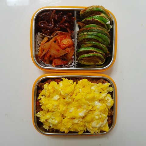 애호박이 저렴해서 하나 집어온 후 전으로 부쳐뒀는데, 며칠을 먹었는지 몰라요. 이 날은 따로 메인요리는 없었고 달걀말이만 후다닥 해서 가져갔었어요ㅎㅎ.