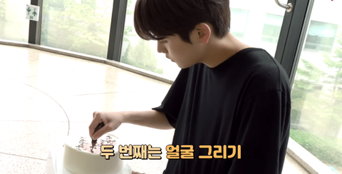 먼저 초코펜으로 글씨 쓰는 민현이