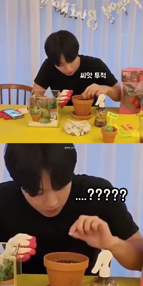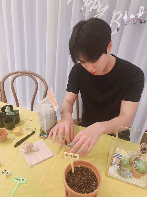박지훈이 0529 생일 기념으로 브이앱 했는데 환경부 기후변화 홍보대사라 그런가 화분 씨앗 심기랑 꾸미기를 했어