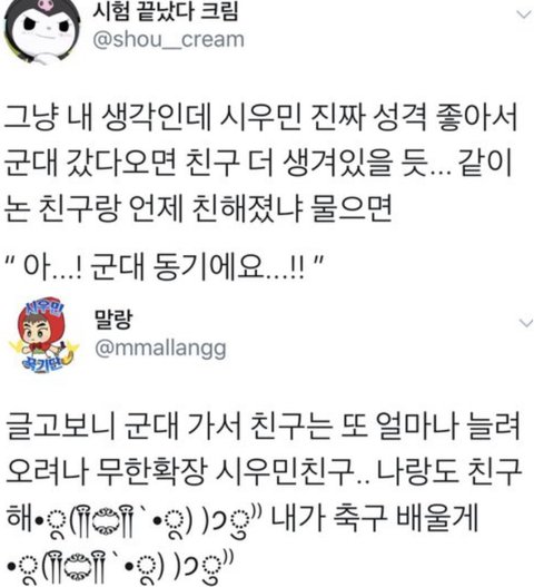 군대에서도 변치 않는 요정력으로 부대 내 아이돌 요정 할 것이며 군대 동기들과도 스스럼없이 잘 어울려서