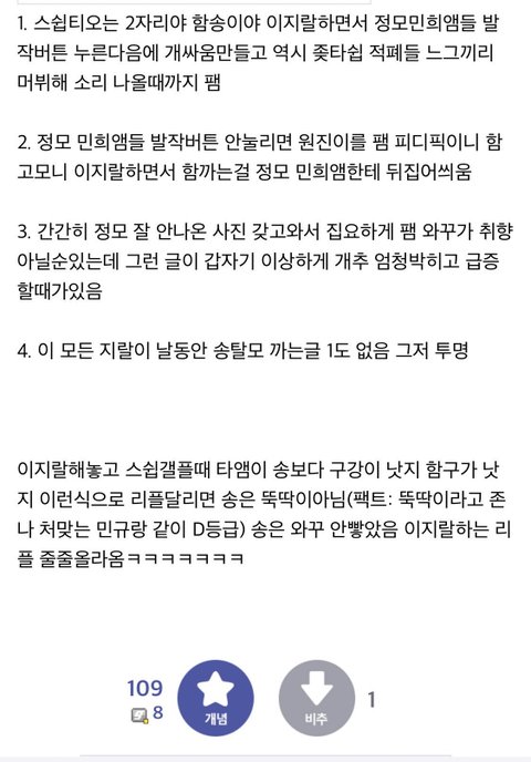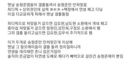 애미없는 99등도 까는애들이 송형준앰임. 송형준빼고 다 팼음ㅋㅋ앰코짓으로 개추박히는거보고 애미있다싶으면 팸. 새끼 영업하러오면 팸. _픈톡에서 지령받고ㅋㅋ무리지어 몰려와서 타연생들 다패왔음