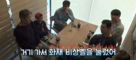 거기서 화재 비상벨을 눌렀다고