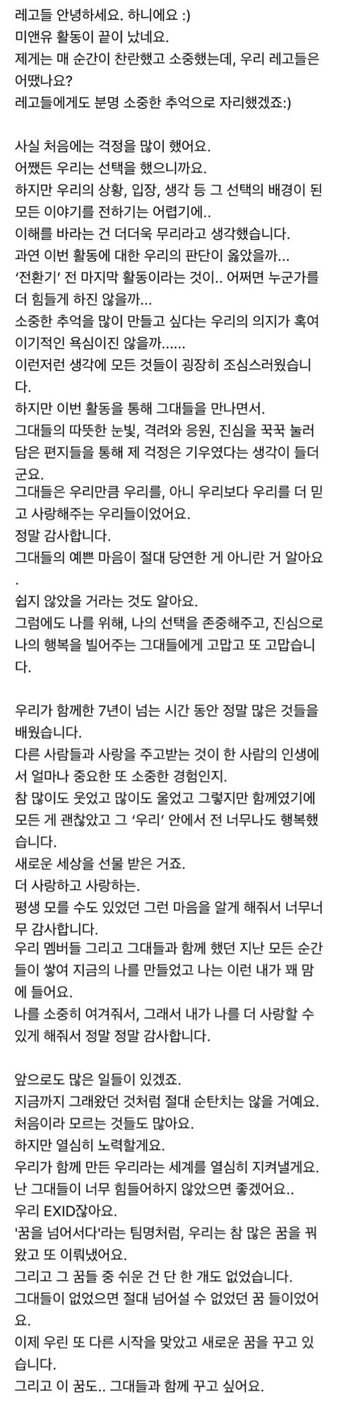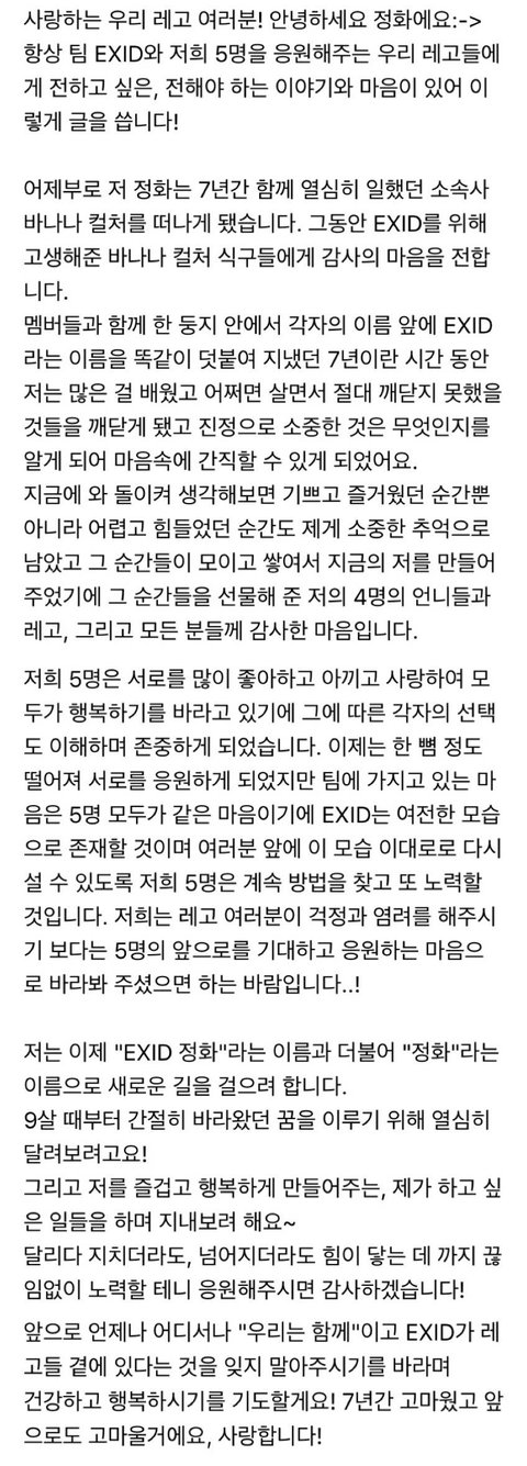 소속사를 떠나는 EXID 하니, 정화의 편지