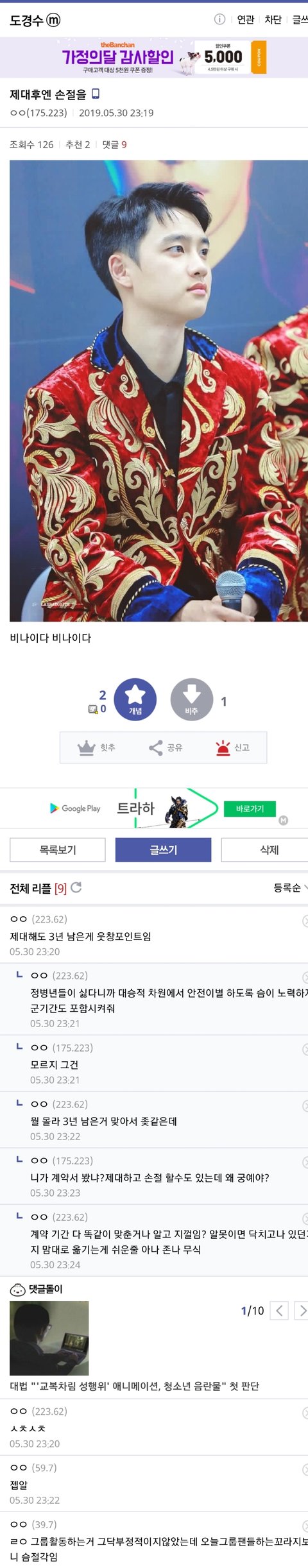 엑소탈퇴하길바라는중 어그로아니고 도경수 갠갤에서 저런글 한두개아님 ㅋㅋㅋ 여기서 미련하게 경수 쉴드치는애들 노이해다