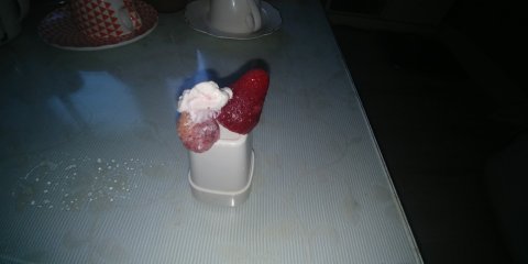 안에서 무슨 케잌에 붙어있던 딸기를 집어넣었는지 생크림이 같이 붙어 얼어있는 딸기가 나왔어요.