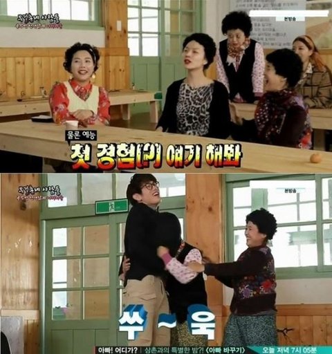 노홍철은 어째해야하나 고민하지만 좋아죽고 장윤정은 어이없어서 웃다가 옆에서 멤버들이 계속 하라고 재촉하고 심지어 하하랑 정준하가 실제로 시범을 보이면서 그러니깐 어쩔수없는상황