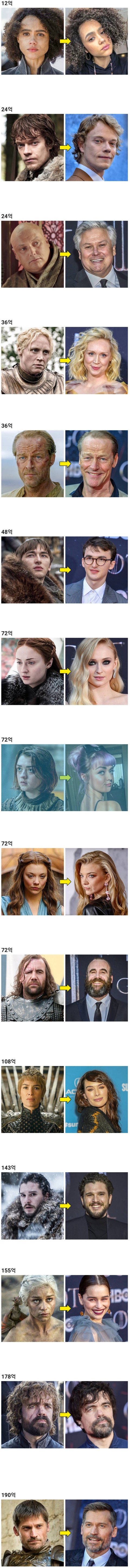 왕좌의 게임 배우들 총 출연료 공개