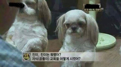 방송사들 제발 저런 거 웃기다고 취재 좀 하지 마라. 학대다. 더구나 개들은 슬개골 탈구 진짜 많아. 아파도 안 아픈 척해서 초기에 잡기도 힘들고. 동물 나오는 프로 보면 학대인 경우 많은데 애정으로 이쁘게 포장해서 식겁하게 만들더라.