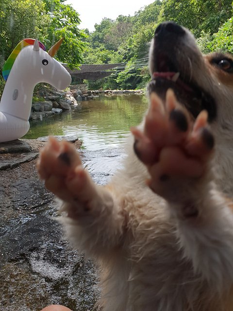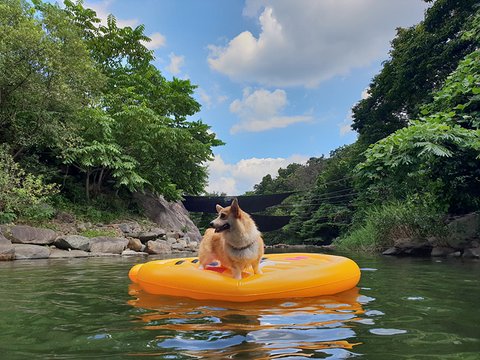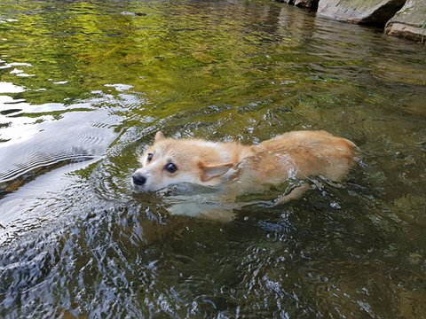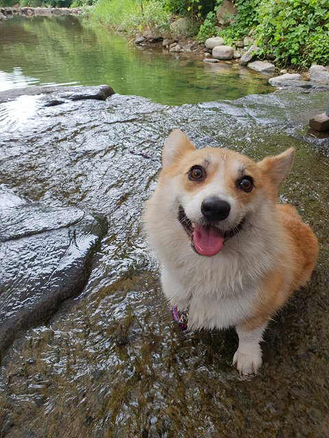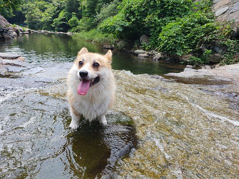 살구는 물을 좋아해요! 집앞이 계곡이라 물에서 많이 놀았어요.