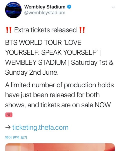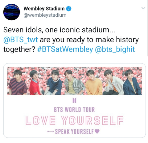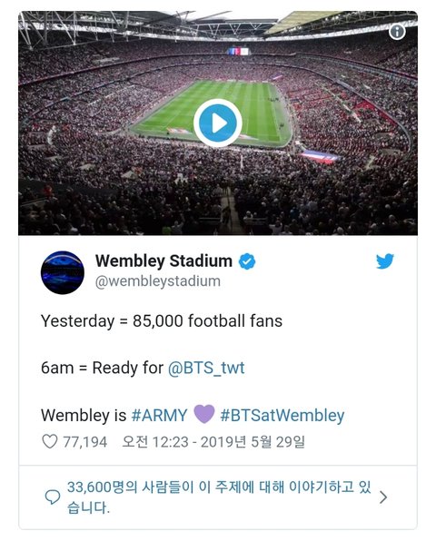 방탄소년단 온다고 귀여운 호들갑 떨고있는 웸블리 공식 계정 ㅋㅋㅋ