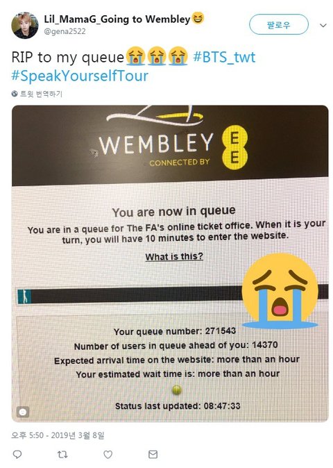 학교 컴퓨터 24대 동원해서 겨우 웸블리 티켓팅 성공한 캐나다팬 사연