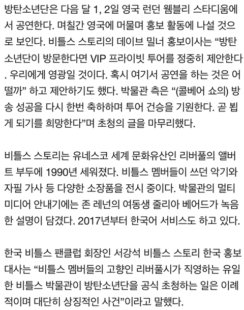 또 이번에 영국 비틀즈 박물관에서 공식 초청도 받아서 웸블리 후에 여기도 가지 않을까 팬들은 기대중