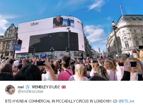 방탄소년단이 모델인 현대차 팰리세이드 새로운 광고가 이 전광판으로 첫공개된다고 해서 그거 볼려고 모여든 런던 시민들 ㄷㄷ