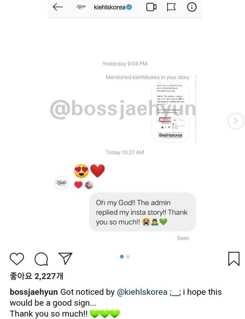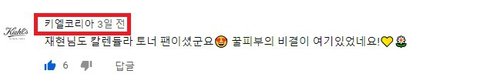 키엘 공식코리아가 NCT 재현 카렌듈라 토너를 사용하는 동영상에 댓글 남김