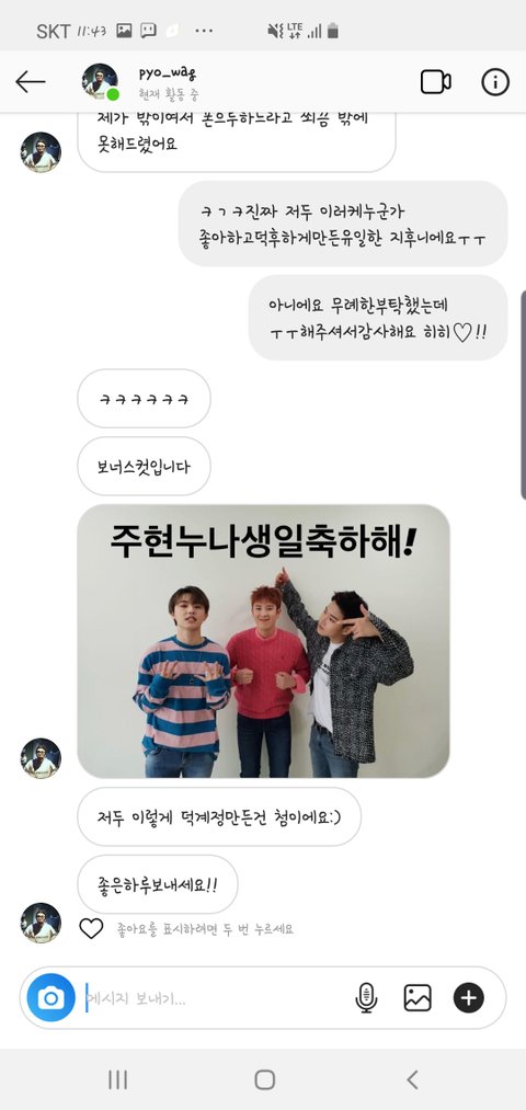 생일때 피오 인스타그램 팬분한테 피오인처럼 부탁했는데 바쁘신 와중에 정성스레 그것도 마니 보내주셔서 감사합니다 ㅎㅎ